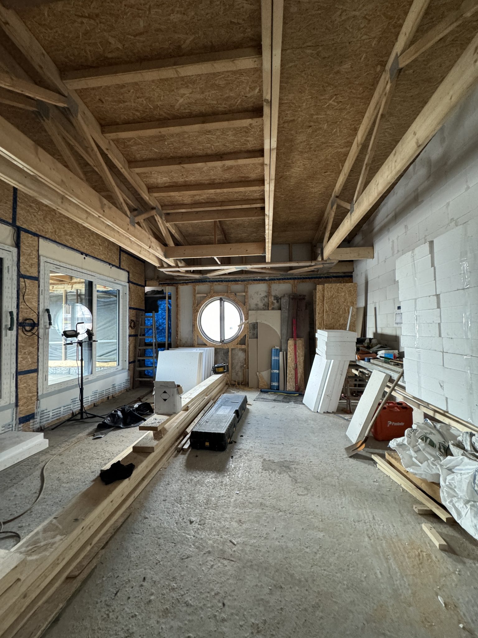 Die Innenarchitektur umfasste die vollständige Konzeption und Umsetzung. Die lose Möblierung wurde über unser Unternehmen Konzept K – Möbel und Leuchten geliefert. Maßgefertigte Einbaumöbel – eine durchgehende Sitzbank sowie ein individuell geplanter Serverschrank – entwickelten und koordinierten wir in enger Abstimmung mit dem Tischler. Verschiebbare Arbeitstische entlang der Sitzbank sowie flexibel einsetzbare Akustikvorhänge zwischen den Arbeitsplätzen ermöglichen eine variable Nutzung und verbessern die Raumakustik.